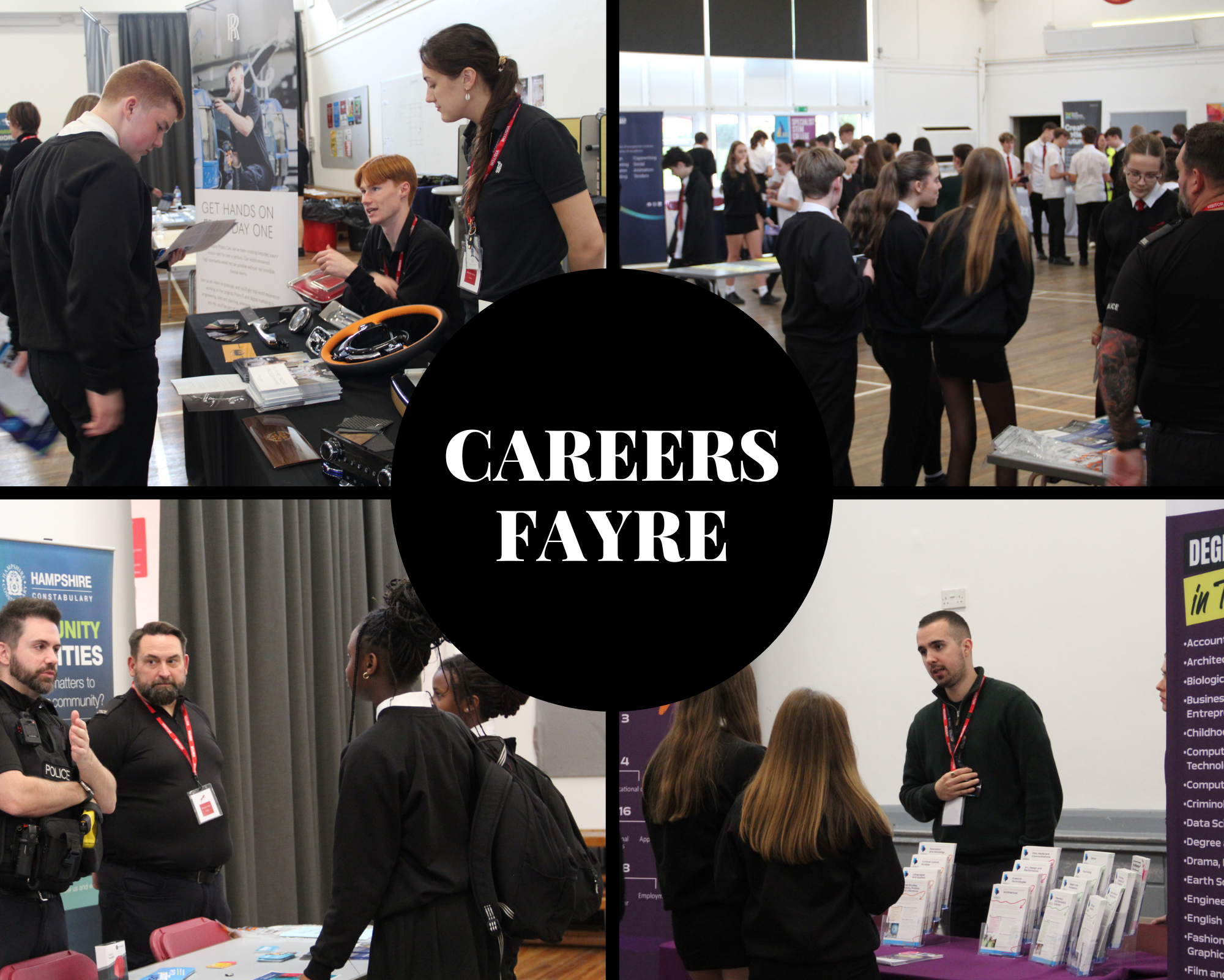 On Monday, 13 October we were pleased to welcome a range of providers to our post-18 themed careers fair. Students were able to explore higher education through speaking to the Southern Universities Network, the University of Winchester and the University of Portsmouth. We also benefited from the insight of a range of employers, including Equans, Creative Clique, Hampshire Constabulary, The Elizabeth Foundation, the RAF, St. Peter's Vets, BAE Systems, UTC and Rolls Royce. Apprenticeship providers such as PETA and South Hampshire College Group were also present.
