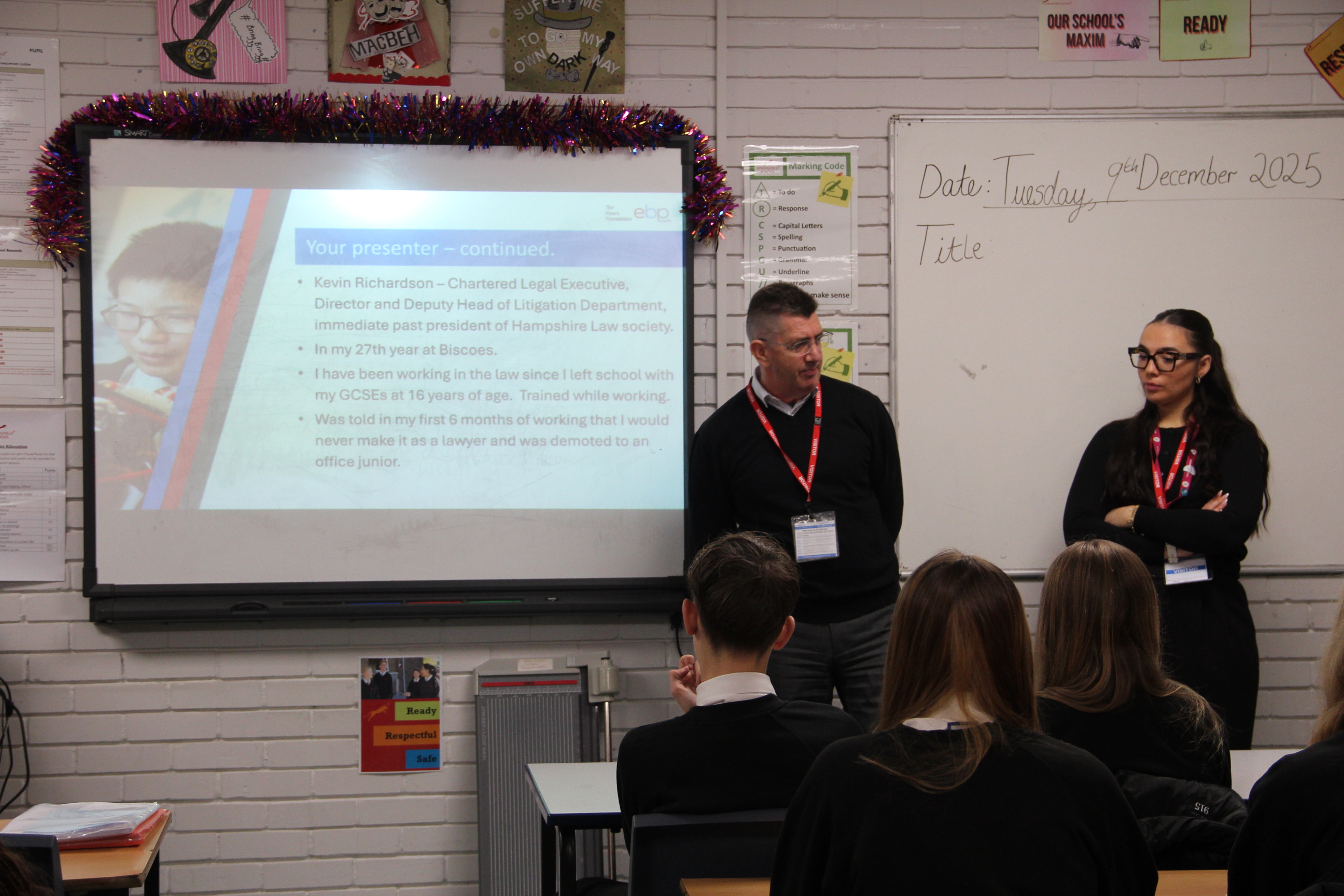GCSE English group 10C1 took part in an engaging session run by Biscoes Solicitors on Tuesday, 9 December 2025. This was part of the Employer Engagement Project, which aims to help young people make connections between their academic studies and the world of work. Year 10 students have been taught a GCSE English Language question that explores the perspectives and views of authors. This session aimed to show how lawyers use the same skills.