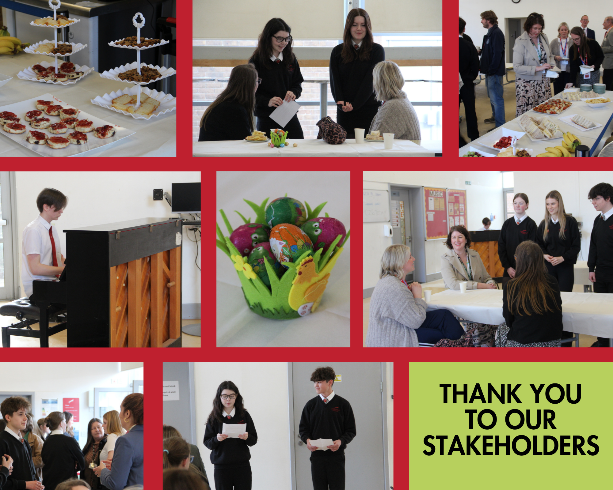 We are delighted to share the success of our recent Stakeholders' Tea, held on Thursday, 27 March, in the welcoming ambiance of our Treble Clef Chef room. This informal event embraced the spirit of spring, featuring delightful piano renditions by our talented music pupil, Aidan Cable-Rogers (11F).